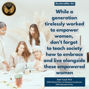 Indonesia Prima is deeply committed to empowering women entrepreneurs through its initiatives, including Accelerather, Business Accelerator Womenpreneurs Network, G100 Business Accelerator, WIN Womenpreneurs Indonesia Networks, and the OGWE One Global Women Empowerment B20 legacy for Indonesia Chair G20 2022. Here’s a brief overview of what Indonesia Prima does through these programs and why they are important: